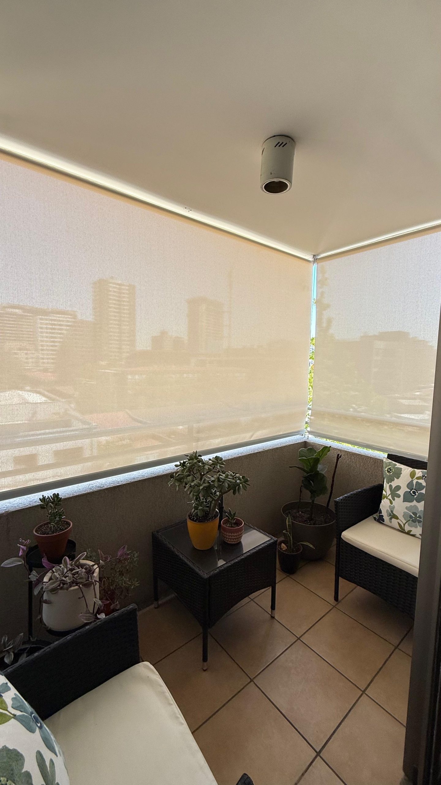 - Fabricado con tela técnica screen de primera calidad con filtro UV, permite reducir significativamente la radiación solar directa, manteniendo al mismo tiempo la visibilidad hacia el exterior y una agradable entrada de luz natural.